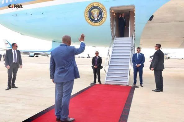 NaCatumbela, de onde descolou o Air Force One (avião presidencial americano), o Presidente dos Estados Unidos da América recebeu uma última saudação do seu homólogo angolano, o Presidente João Lourenço. E assim se fez História!